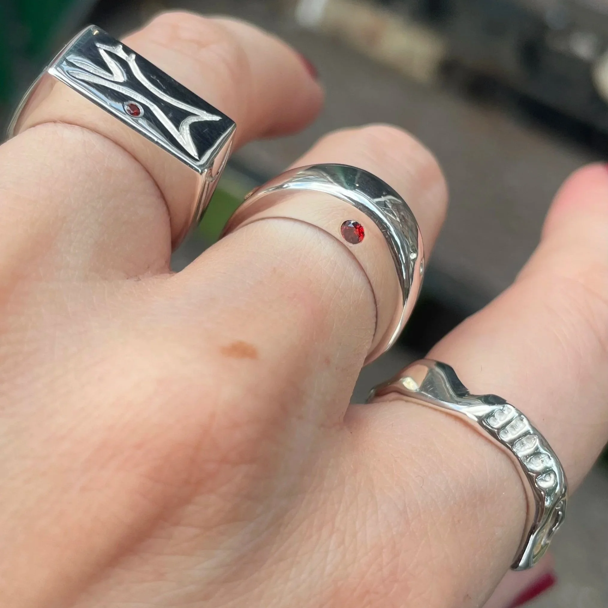 A one-of-a-kind sterling silver ring, up to 10g in weight, designed and carved by you.